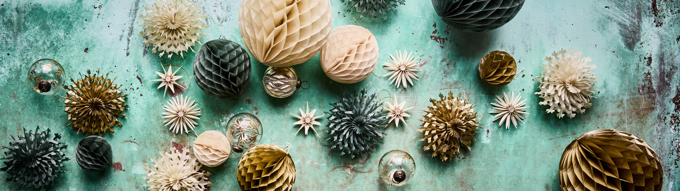 Färgglada pappersdekorationer för ditt hem. Utforska ett universum av unika former och vackra färger.