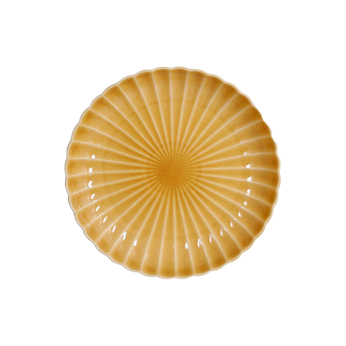 Pesca mattallrik i keramik från Mica Decorations. Stengodsserien är i en vacker ockra nyans med mönster och slät glasyr. Alla produkter i Pesca-serien är handgjorda och har därför unika former. Serien består av skålar, tallrikar och muggar.