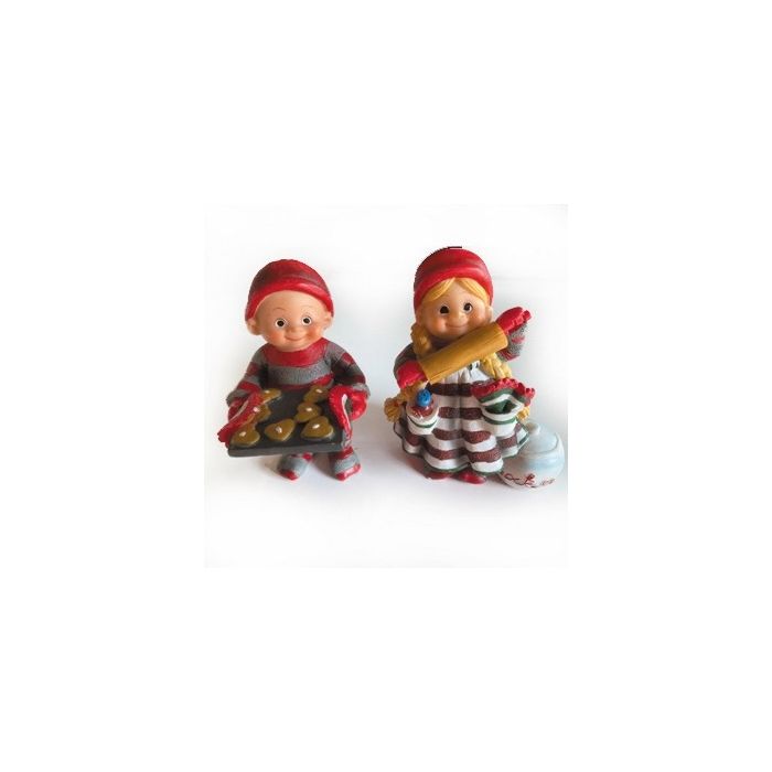 Det doftar jul och nybakade småkakor när bäbistomtarna från Pobra går in i köket! Dessa bedårande julfigurer visar de små tomtarna mitt i bakningen – den ena med kaveln redo, den andra med plåten full av nygräddade hjärtan. Med sina röda luvor, glada leenden och klassiska färger sprider de värme, nostalgi och äkta julglädje. Placera dem på kökshyllan, i fönstret eller som del av ett mysigt tomteland. De passar överallt där du vill skapa julstämning med en touch av barndomens magi. Välj mellan två varianter.