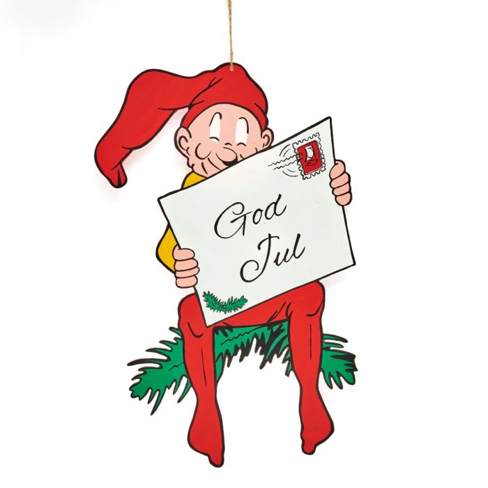 Brammingtomten med julbrev från Pobra sprider klassisk julglädje och charm. Den glada tomten sitter på en grankvist och håller ett julkort med texten “God jul” – redo att sprida värme och leenden i vintermörkret. Figuren är tillverkad i trä, 40 cm hög och målad på båda sidor med väderbeständig färg. Den har snöre för upphängning och passar perfekt på staket, balkong, veranda eller vid entrén. En klassisk Brammingtomte som kombinerar humor, nostalgi och julkänsla på bästa sätt.