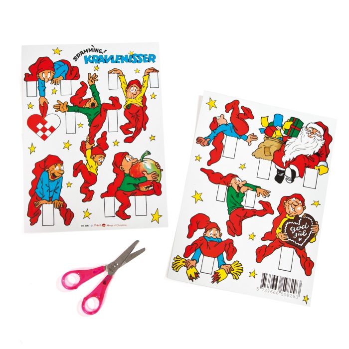 Brammingtomtar med balansflikar för att placera på bilder, hyllor etc. Det finns 6 tomtar som kan klippas ut med sax på varje ark.