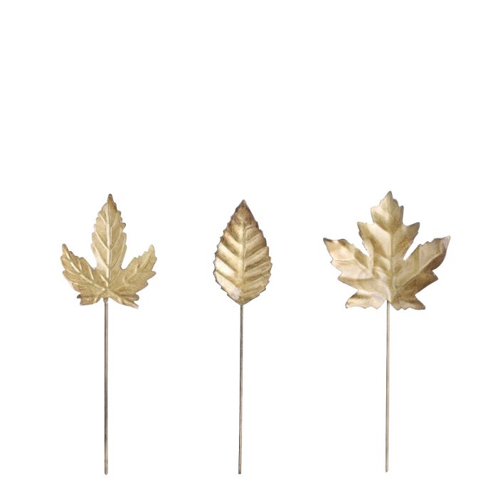 Dekorationspinne Guldfärgade med blad för att sticka in i kransar, jord eller dekorationer. Finns i 3 olika bladsorter.