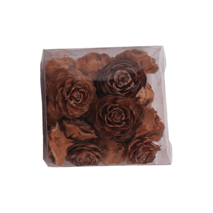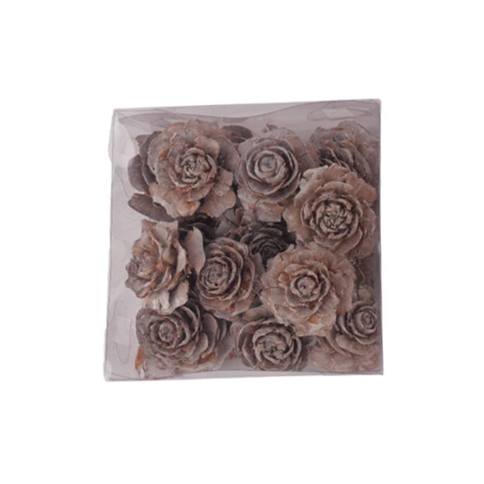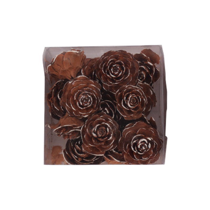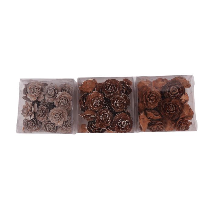 Kotterosor från cederträ med tråd i tre olika nyanser. Mycket dekorativa med sitt rosliknande utseende. Välj mellan mycket "frost", lite "snö" eller naturliga bruna.