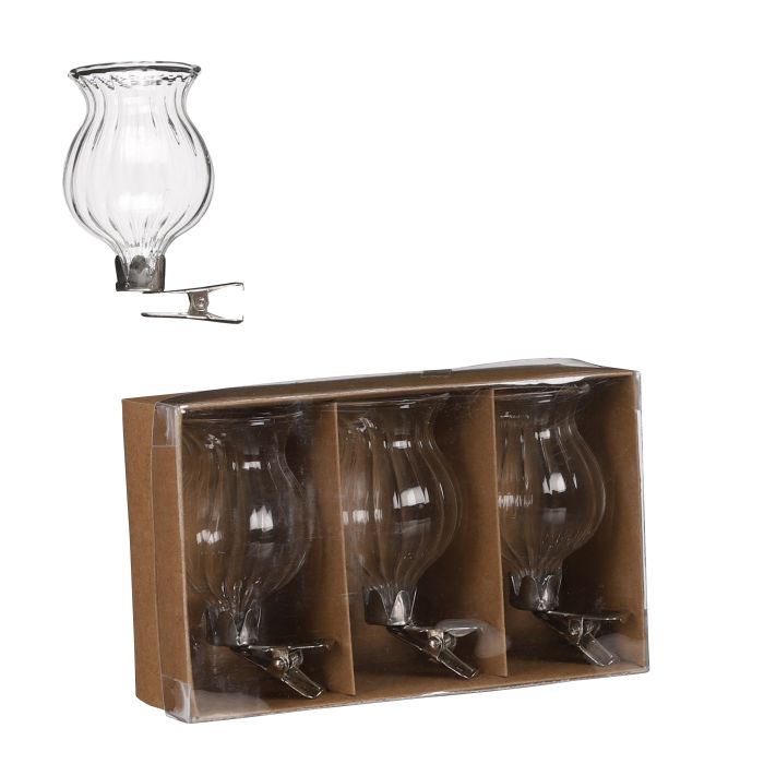 Glasvaser på klämmor med räfflor. Fina vaser med klämmor, så de är lätta att sätta på en gren eller liknande. Du kan lägga ljus, blommor eller julgodis i vasen. Kanske har du ännu fler idéer!