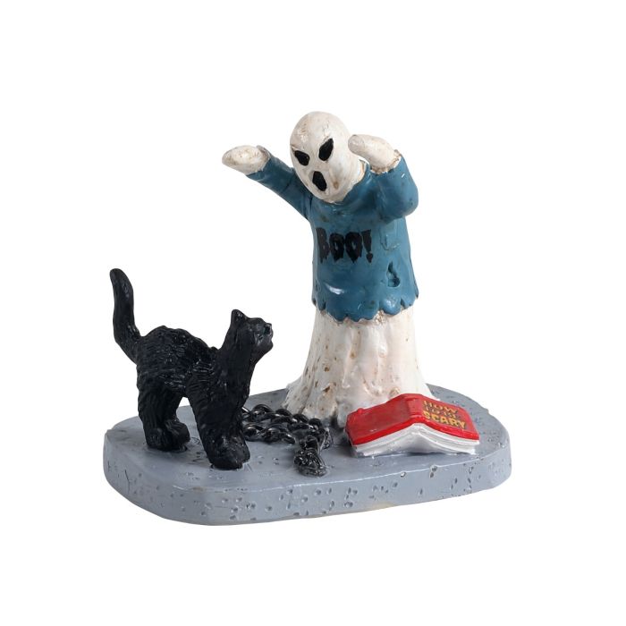 Spöket övar skrämseltekniker på den svarta katten.