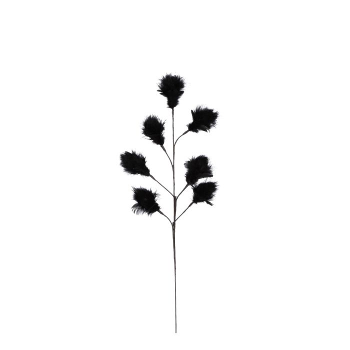 Gren med flera smågrenar, vars ände har en svart tofs av fjädrar. Dekorativ i buketter eller som en fristående dekoration i en smal vas.