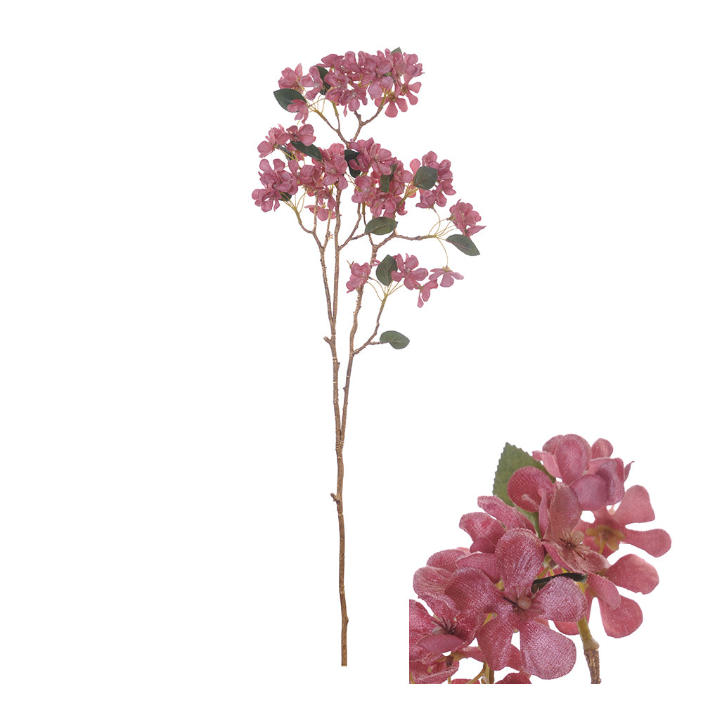 Rosa äppelblommor i en något mörkare rosa nyans ger våren värme och djup. Denna konstgjorda gren har blommor med ett milt men distinkt uttryck, vilket gör den idealisk för både romantiska och mer färgglada vårbuketter.