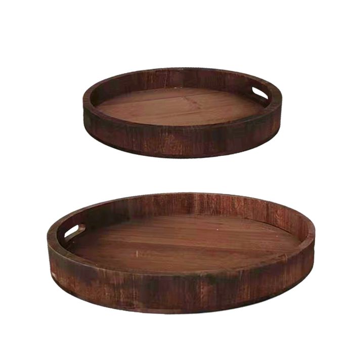 Set med 2 runda brickor i mörkt trä