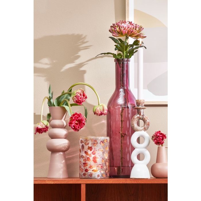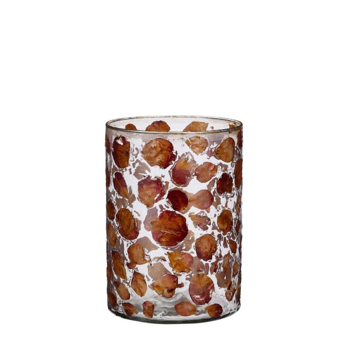 Bente lykta är i klart glas med persikofärgade blad inuti glaset. Om ett blockljus eller ett stort värmeljus sätts in kommer det vackraste ljusspelet från lyktan. Bente lykta finns i 2 storlekar.
