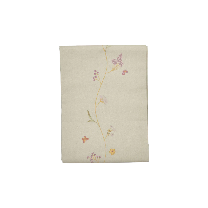 Sommarduk med blommor coated 140 cm x 360 cm linnefärgad