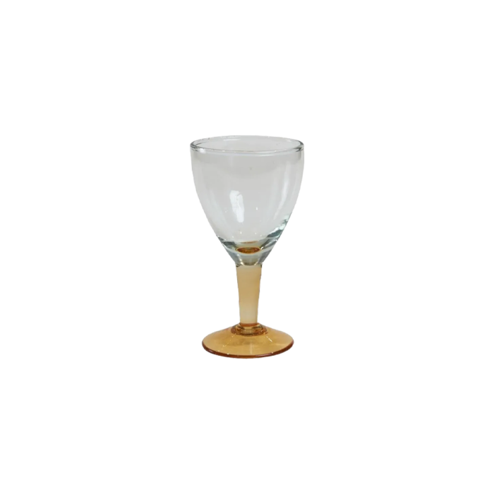 Munblåst och handgjort vinglas med gul fot från Speedsberg. Vinglaset har en bra storlek för både rött och vitt vin. Den färgade foten är en fin detalj för dukningen. Vinglaset finns i flera färger och ingår i glasserien, som även inkluderar champagne- och ölglas.