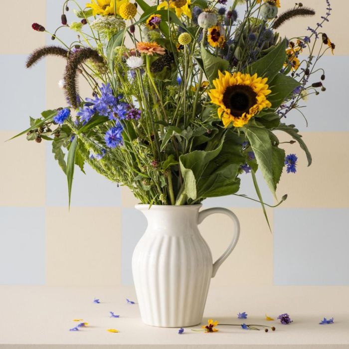 Kanna med breda räfflor och i nyansen butter cream från Ib Laursens populära Mynte-serie. Kannan har en mängd användningsområden, då den tål både varma och kalla drycker. Den kan även användas i mikrovågsugn, ugn, frys och diskmaskin. Använd den rymliga kannan till lemonad, blommor, varm choklad och mycket mer.