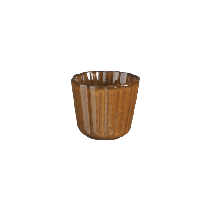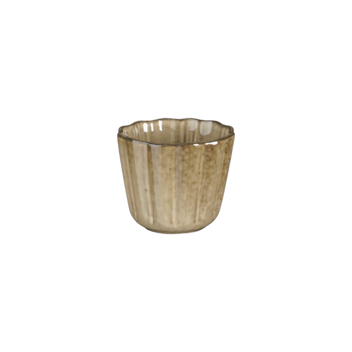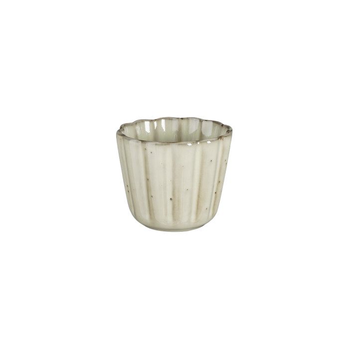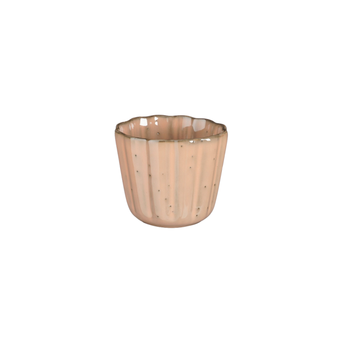 Korfu koppar utan handtag med svängda kanter och blommigt uttryck från Mica Decorations. Muggarna finns i fyra olika färger: grå, ljusbrun, brun eller rosa. Skålar finns även i samma serie.