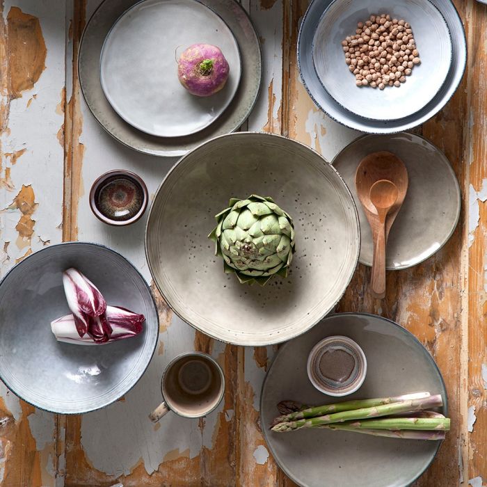 Tabo tårtfat i stengods krämfärg. Vacker stengodsserie i en naturlig, krämfärgad färg med mycket färgspel i glasyren. Alla produkter har unika, organiska former. Serien består av skålar, tallrikar och muggar.