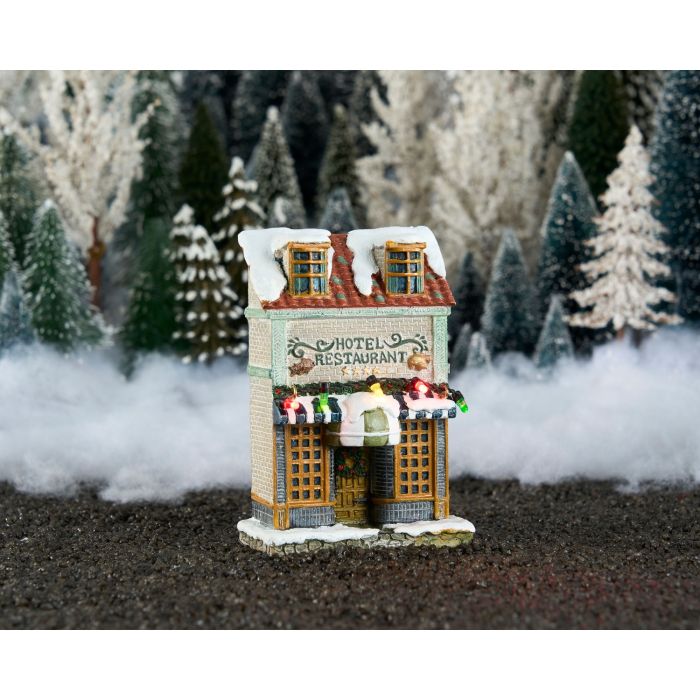Luville "Facade hotel restaurant" är en del av Luvilles Ville de Reidy-serie av hus och figurer för jullandskapet.