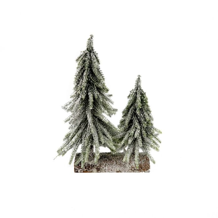 Skapa ett sagolikt vinteruniversum med dessa två konstgjorda hänggranar i olika höjder. Granarna står stadigt på en bas av en halverad trästam, vilket ger ett naturtroget uttryck. Båda granarna är täckta av ett tungt snötäcke som tillför en autentisk vinterkänsla och gör dem idealiska för julbyar, vinterlandskap eller som en mysig dekoration i hemmet.