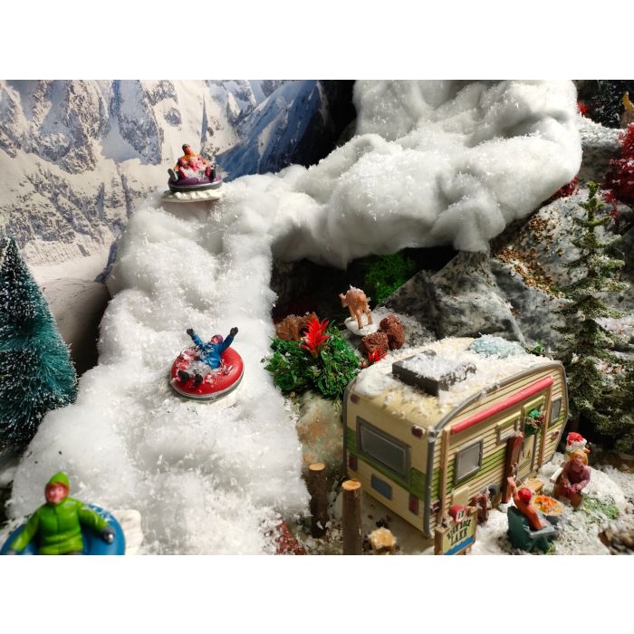 Hopfällbar snöunderlag för dekoration i jullandskapet. Detta är den helt nya mattan från MyVillage, som du kan vika och skrynkla själv, så att du får det naturliga utseendet i ditt jullandskap. Möjligheterna är oändliga. Det är viktigt att du använder arbetshandskar när du viker och modellerar denna matta. Den hopfällbara snömattan är vattentät, miljövänlig, återvinningsbar och kan återanvändas år efter år. Mattan är lätt att klippa, limma och vika.
