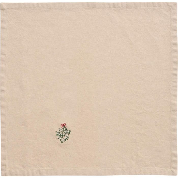 Låt din juldukning andas tradition och mys med denna eleganta tygservett från Ib Laursens Tradition-serie. Servetten är sydd i linnefärgad bomull och vackert dekorerad med en broderad mistelkvist med fina vita bär, vilket ger bordet ett klassiskt och stämningsfullt uttryck. Den enkla och tidlösa designen passar perfekt för både vardagliga måltider i december och för årets festliga julmiddagar. Kombinera servetten med en matchande löpare och andra textilier från samma serie för att skapa en harmonisk och inbjudande dukning som sprider värme och julstämning runt bordet.