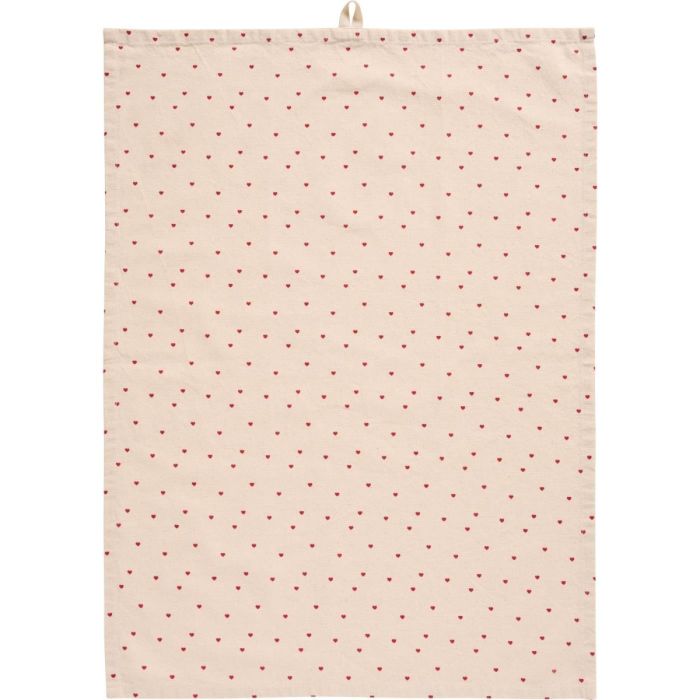Kökshandduk natur med röda hjärtan