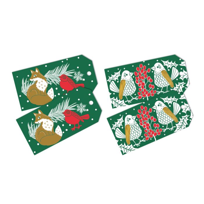 Presentetiketter / till-och-från-kort. 2 x 2 motiv från årets juletikett per paket.