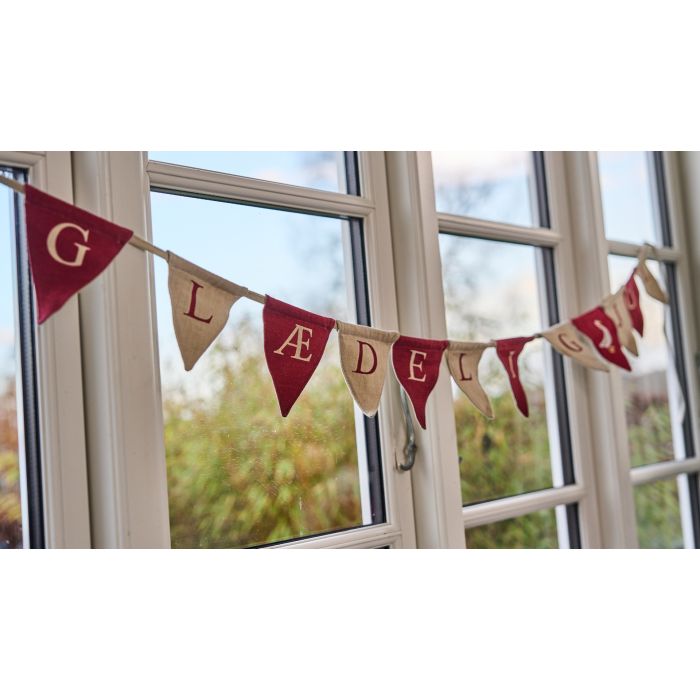 Mysig girlang från Speedtsberg med orden "GOD JUL" och en söt gås. Girlangen dekorerar julgranen, ytterdörren eller framför fönstret.