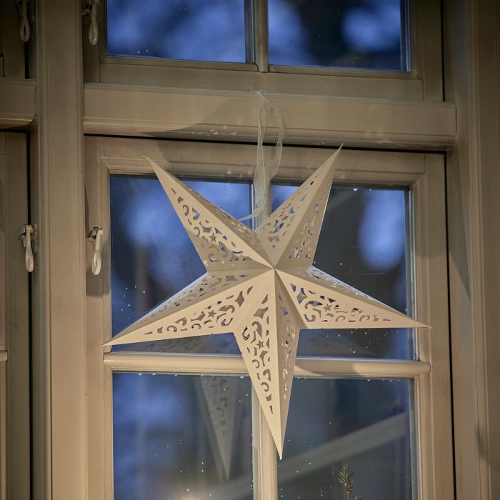 Denna vackra pappersstjärna från Speedtsberg skapar en varm och mysig julstämning i hemmet. Den har ett klassiskt och mycket fint hålmönster där dagsljuset kan lysa igenom. Häng den i fönstret, på dörren eller på väggen för att fullända juldekorationen.