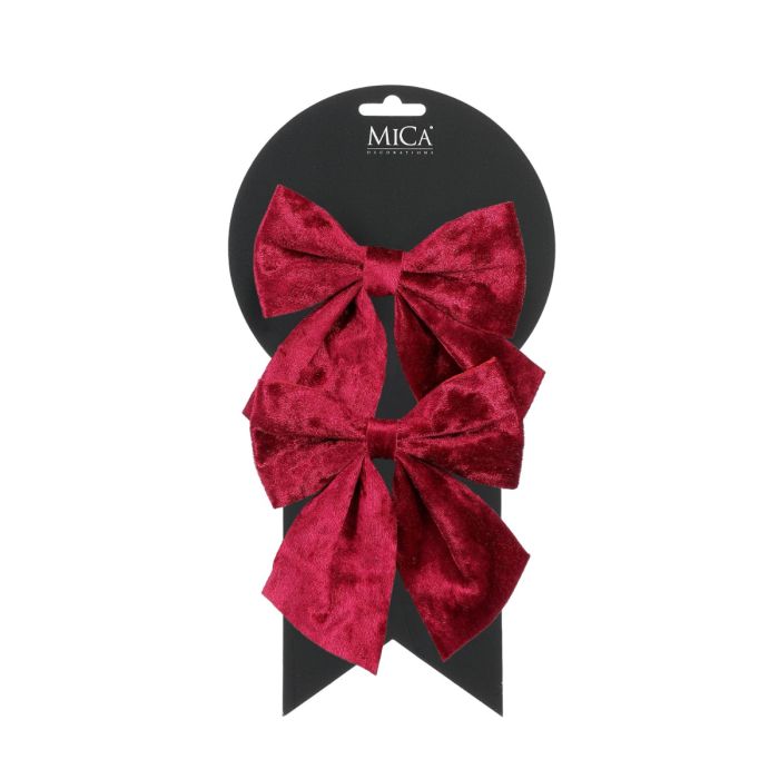 Mörkröda rosetter i mjuk velour. Klassiska och dekorativa julrosetter som ger värme och elegans till vilken juldekoration som helst. Rosetterna kan användas på julklappar, som dekorationer i julgranen eller hängas på kransar och grangirlanger. De är också perfekta som bordsdekorationer till julmiddagar eller för att skapa en röd tråd i juldekorationen, oavsett om det är hemma, på julfester eller i skyltfönster. Velourens mjuka textur och djupa mörkröda färg ger ett exklusivt utseende. Rosetterna är enkla att placera med metallklämman och kan användas igen år efter år.