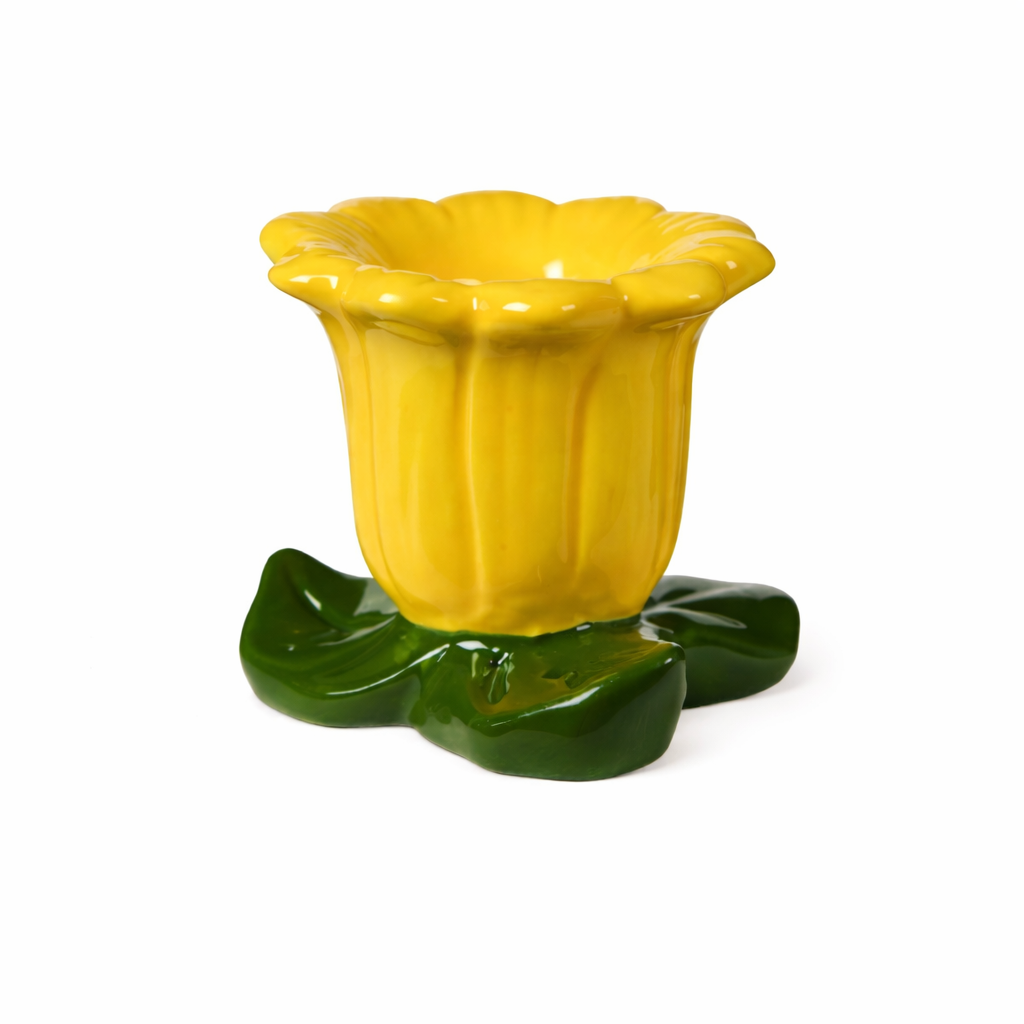 Den är tillverkad av keramik och utformad så att kronbladen bildar en liten skål runt ljuset. Formen ger ljusstaken ett dekorativt utseende, även när ljuset inte är tänt. När lågan från ett kronljus brinner reflekteras ljuset mjukt mot de släta ytorna och skapar en varm atmosfär runt bordet.