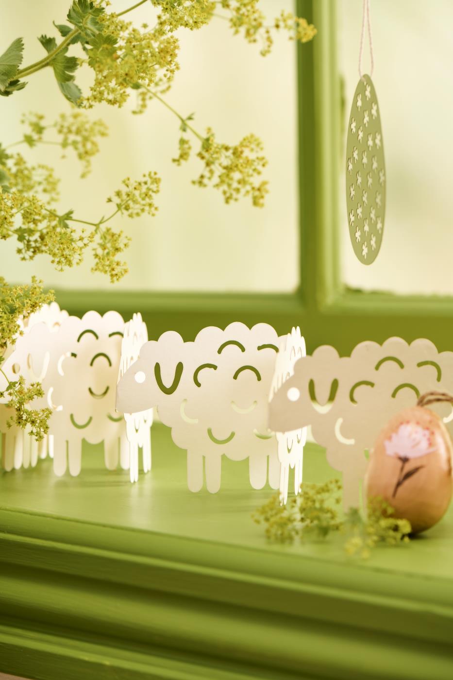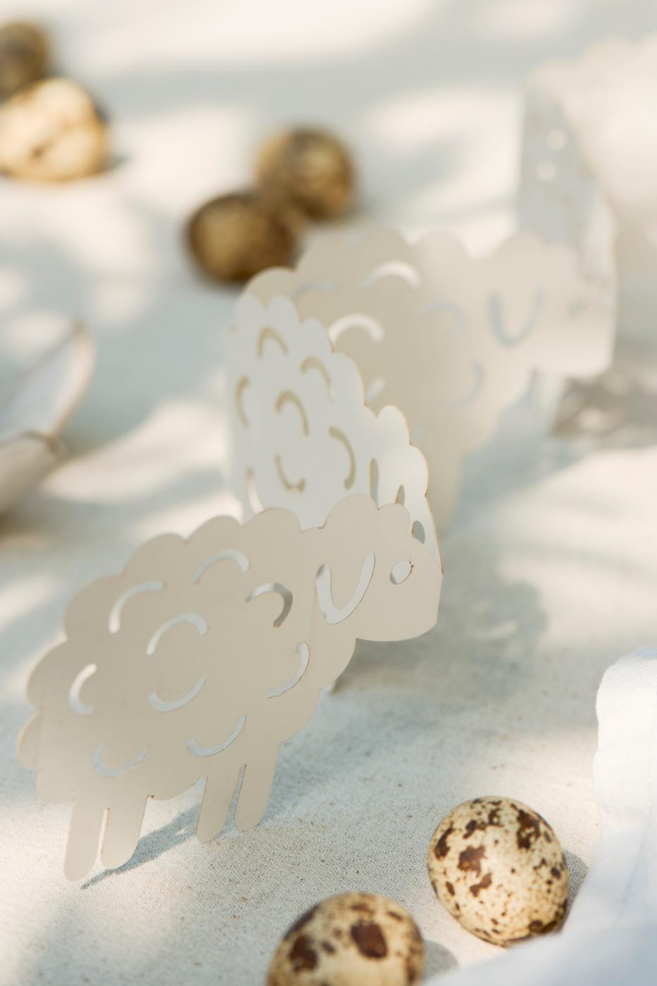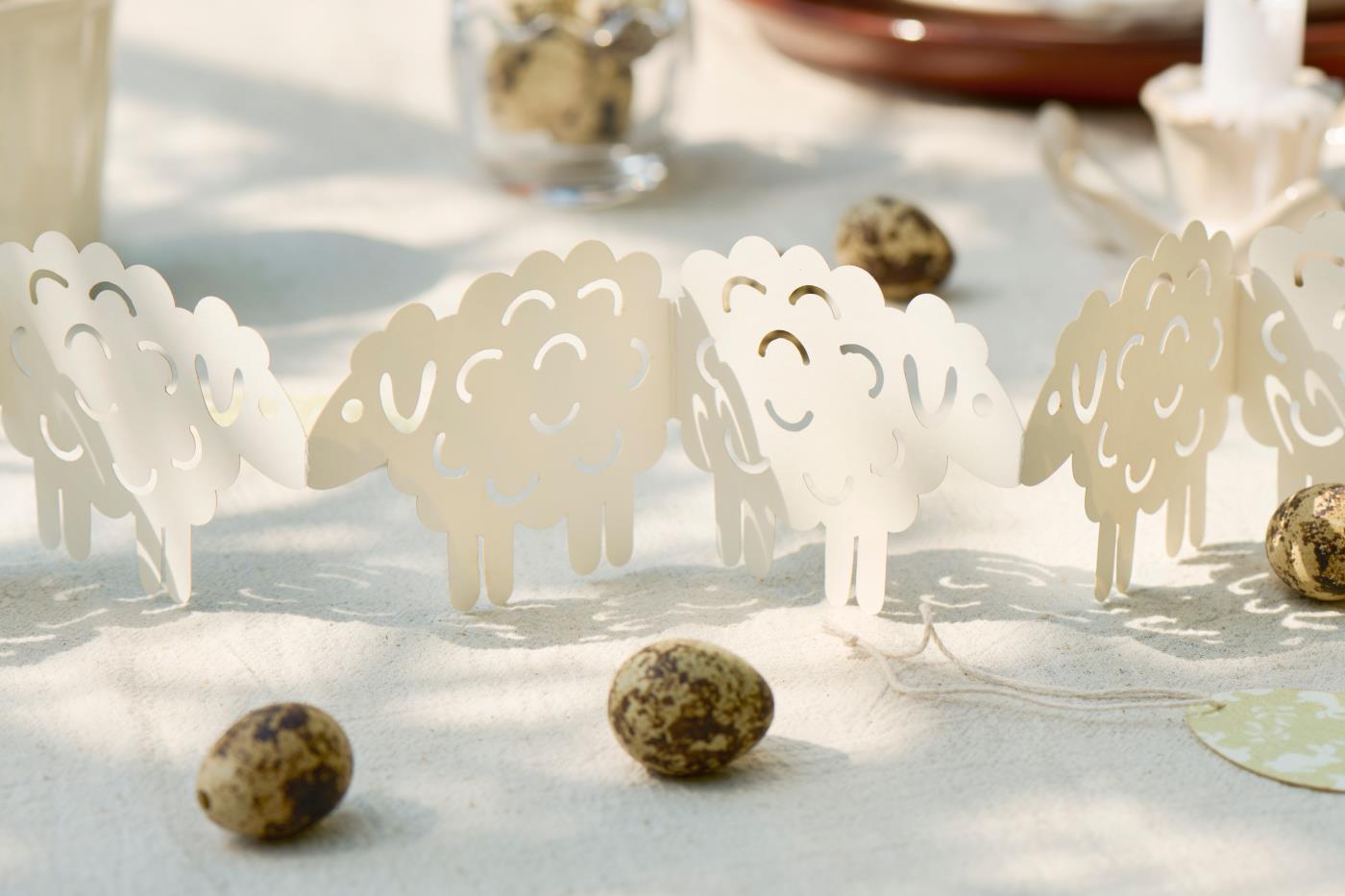 En vacker och enkel bordsdekoration kan bidra till att få ihop hela påskbordet, och denna fina pappersutklippning med små lamm från Ib Laursen tillför just den mysiga och lätta vårstämningen som hör påsken till.