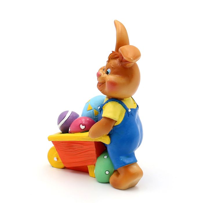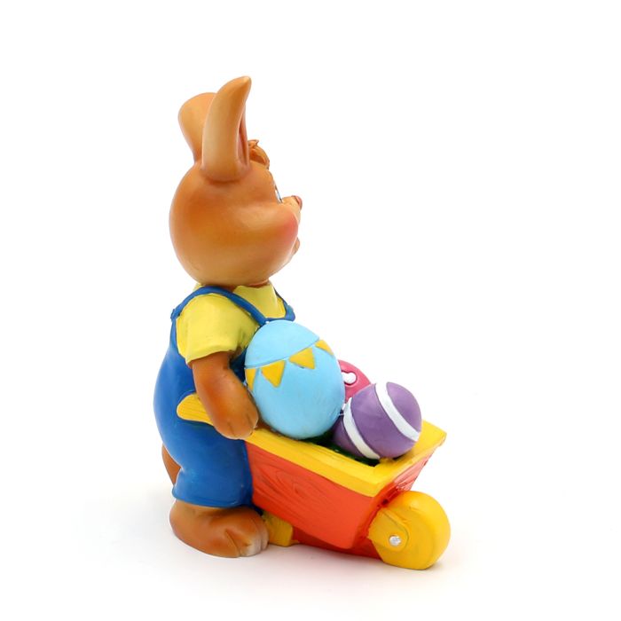 Påskhare med ägg i skottkärran - Blå byxor är restnoterad och skickas så snart den finns i lager igen.