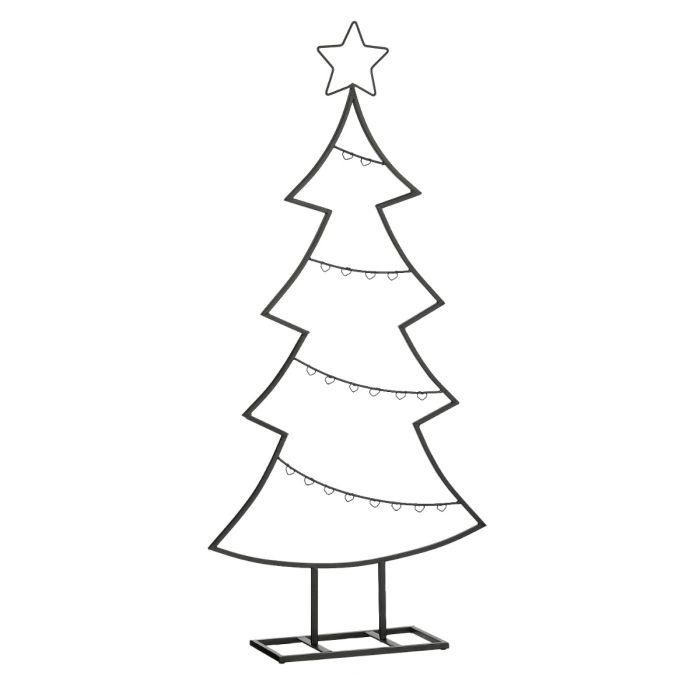 Dekorativ gran i svart metall formad som en julgran med en stjärna i toppen. Julgranen har sneda "girlanger" där julkulor eller små julfigurer kan hängas. Granen från Mica Decorations har en tidlös design och finns i flera storlekar, färger och utföranden.