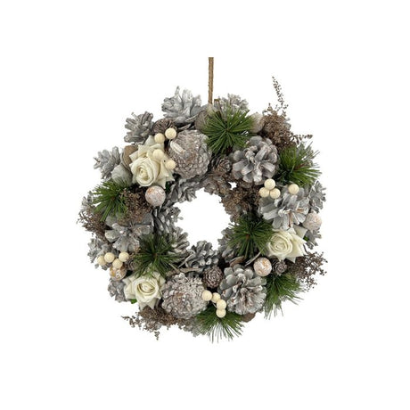 Du hittar även tunna kransar av tallkottar, konstgjorda bärkransar och grankransar med och utan snö.