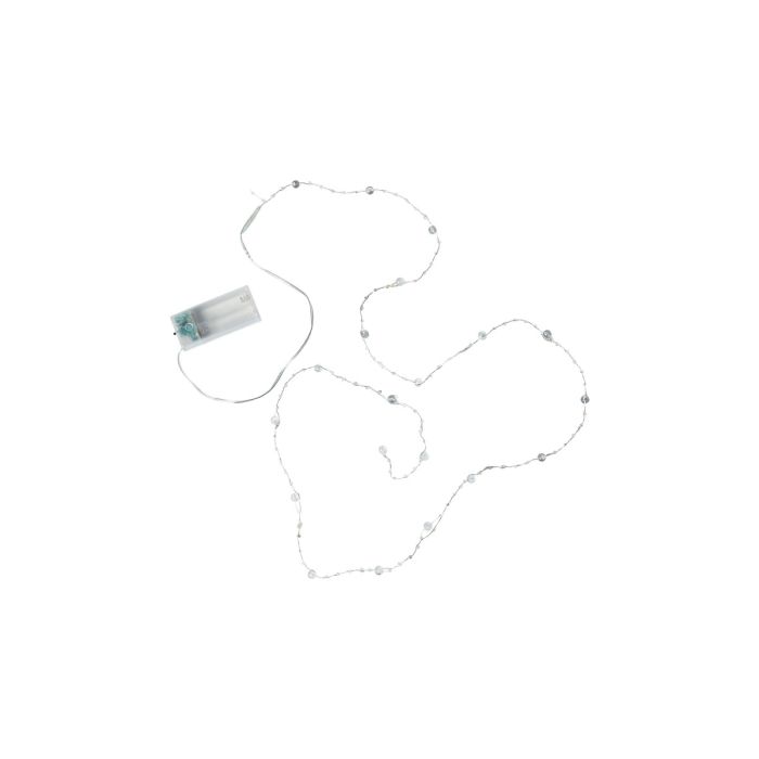 Fin liten ljusslinga för dekoration med 15 lysande varmvita LED-lampor och små dekorativa klara pärlor. Dekorera vinter- eller julkransar, girlander, lyktor eller använd ljusslingan som en del av bordsdekorationen. Den är avsedd för inomhusbruk och kan endast användas utomhus om det är under tak.