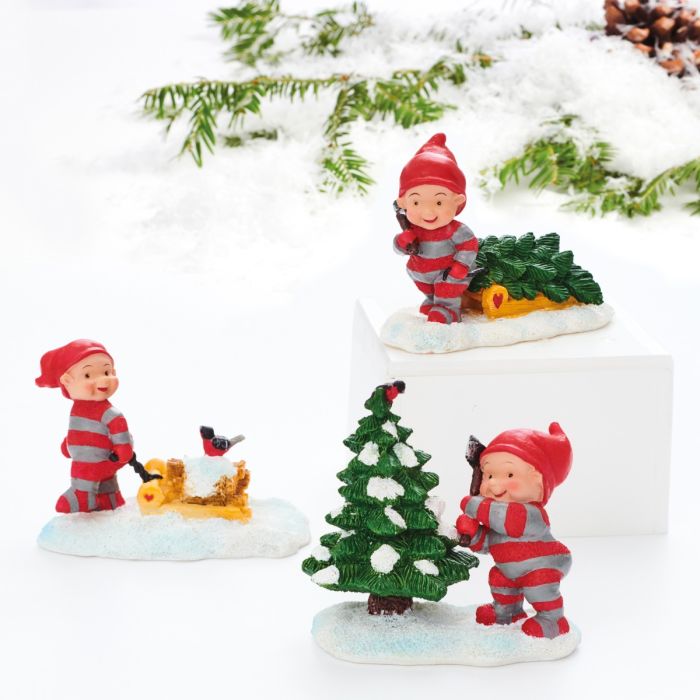 De små bäbistomtarna har fullt upp i skogen, där vintern doftar av gran och jul. Här hjälper de till med förberedelserna så att allt är klart inför julens fest. Några drar kälken full med halm, andra släpar på ved, medan en gör sig redo att fälla en julgran allt med leenden och tomteglädje. Bäbistomtar i skogen finns i tre varianter: en med kälke med halm, en med kälke med ved, och en som förbereder sig för att fälla ett träd. Figurerna är tillverkade i polyresin med fina detaljer och varma färger som fångar känslan av natur, tradition och klassisk julstämning. Bäbistomtarna är designade av Susanna Hartmann för danska Pobra, kända för sitt älskade och nostalgiska tomteuniversum med små tomtar i rött och grått. En mysig och stämningsfull serie julfigurer som sprider naturens lugn, arbetsamhet och tomteäventyr i hemmet. Perfekta i ett tomtelandskap eller som pynt på hyllor och bord.