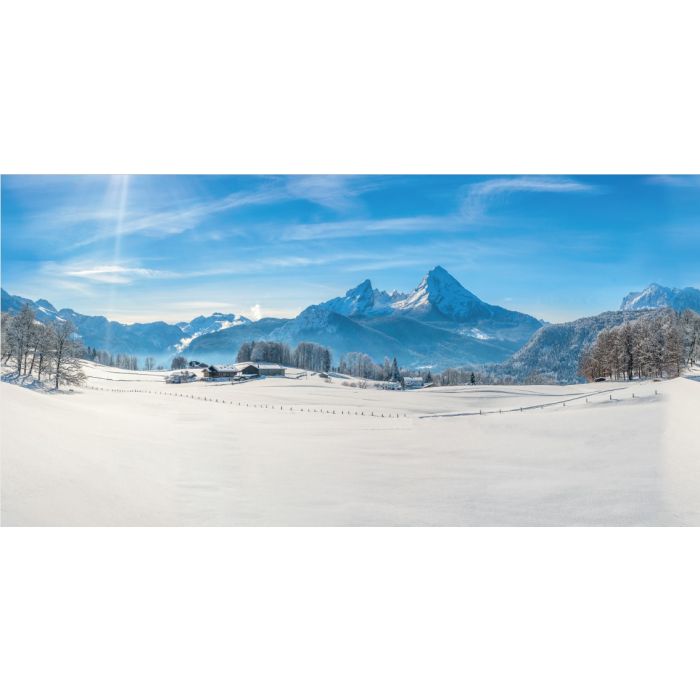En bakgrund med alperna i tyg som är väldigt lätt att hänga upp. Bakgrunden passar perfekt i en julby eller i ett mysigt julandskap.