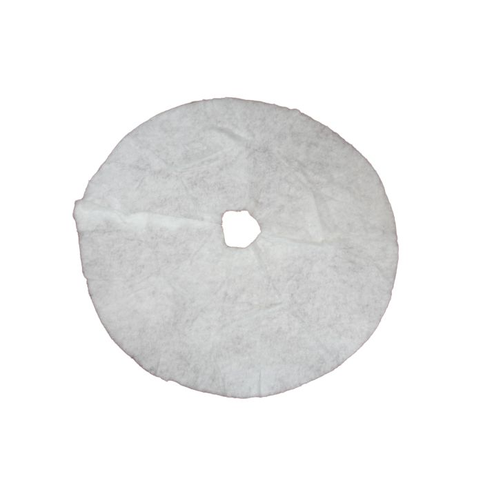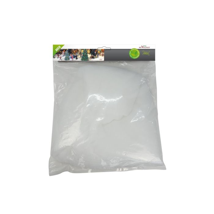 Vit, rund bio-snötäcke med öppning och hål i mitten för användning under julgranen. Snötäcken kan användas för att placera tomtar eller skapa ett jullandskap. Filten kan även användas utan dekoration som julgransmatta. Snötäcken är tillverkad av bambu och innehåller därför inte plast.