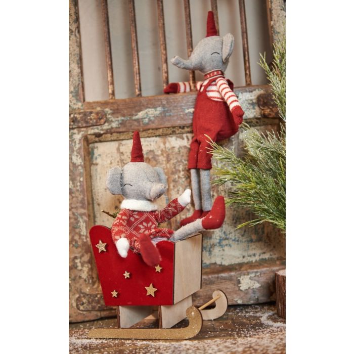 Mycket kära elefanter med sydda kläder i julens färger och blandade material. Elefanterna är från Speedtsbergs serie med grisar, möss och många fler, alla med fina julkläder och i mjuk, bra kvalitet. Dekorera en bänk, en trappa eller en släde med de kära varelserna eller gläd ett barn med en ny julkompis. Välj mellan två varianter.