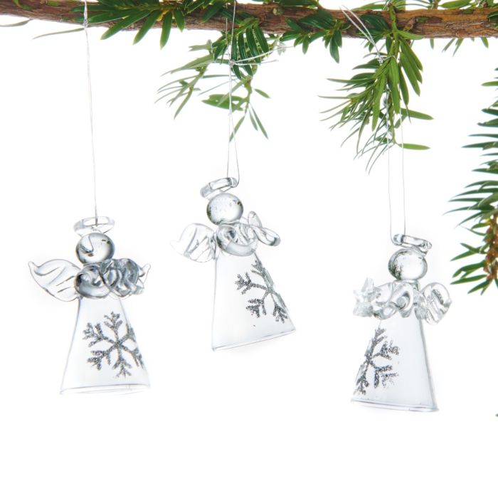 Glasets transparens och de fina silverdetaljerna ger änglarna ett klassiskt och tidlöst uttryck som passar lika bra i traditionell som i mer avskalad julinredning. De kan enkelt kombineras med annan julpynt i glas, silver och naturmaterial och är en dekoration som tillför ljus och lätthet till hemmet under julen.