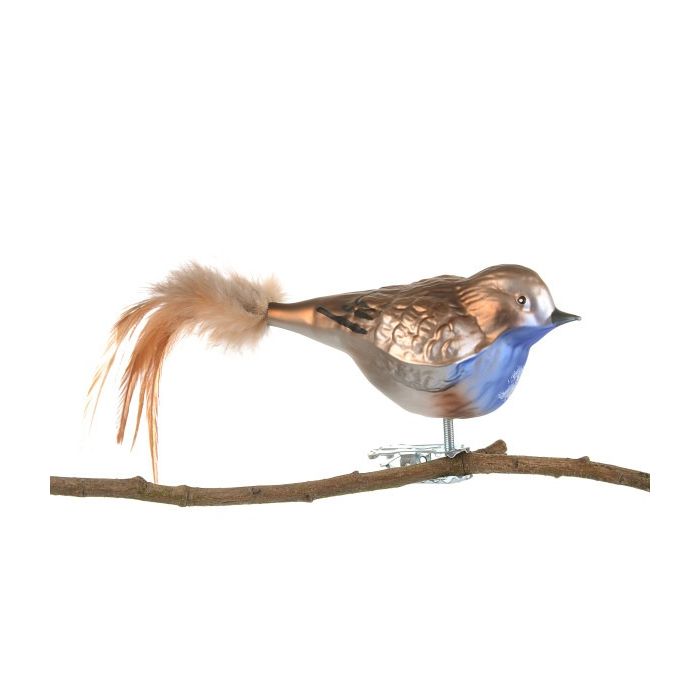 Med den praktiska klämman under fågeln är den enkel att fästa på grenar, kransar eller i dekorativa uppsättningar. En vacker glasfågel där traditionellt hantverk och naturens färger möts i en harmonisk helhet.