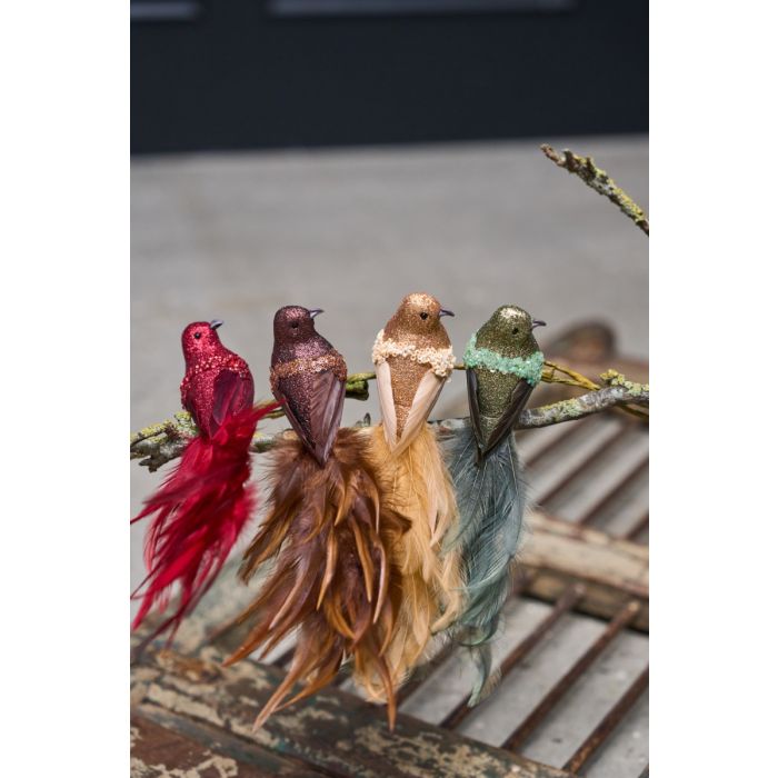 Denna dekorativa fågel fångar uppmärksamheten med sin glittrande kropp och blir en elegant detalj på grenar, i kransar, arrangemang eller i julgranen. Den har buskiga stjärtfjädrar i mörkröda nyanser och fina pärldetaljer som ger ett stilfullt och exklusivt uttryck. Tack vare den praktiska metallklämman kan fågeln enkelt fästas precis där du vill ha den. Den är en del av Speedtsbergs populära serie med dekorationer med klämma och finns i flera olika färger.
