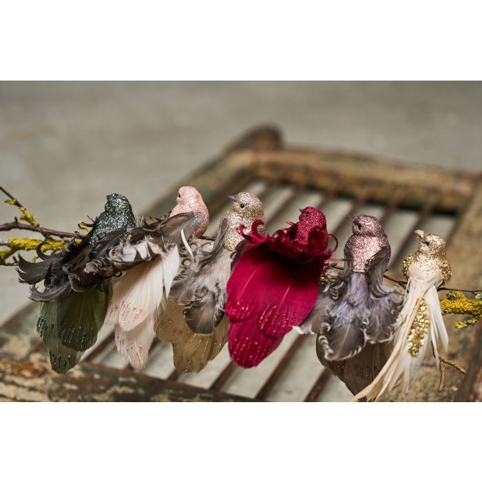 Med sin glittrande kropp är den ett vackert blickfång på grenar, kransar, dekorationer eller julgranen. Fågeln har vackra, dekorativa stjärtfjädrar och en praktisk metallklämma som gör den enkel att fästa. Den är en del av Speedtsbergs serie med dekorationer med klämma och finns i många färger.