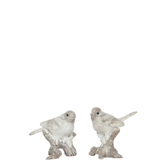 Fågel på trädrot är vit med glitter och finns i 2 varianter.
