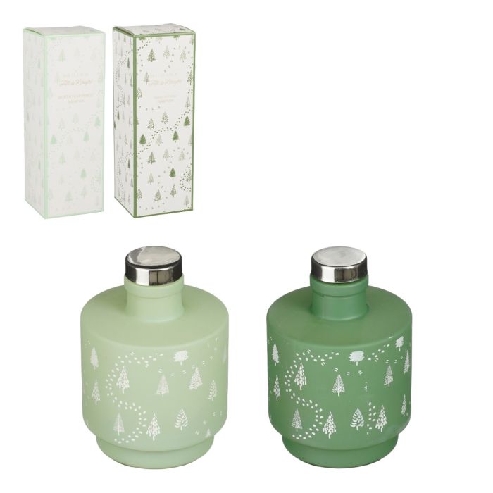 Doftspridare i gröna nyanser med vita granar och små stigar. Den ljusgröna har doften av päronskog och den mörkgröna har doften av cederträ. Mysigt som värdinnapresenter eller bortskämd hemma. I samma serie finns doftljus i presentförpackning.