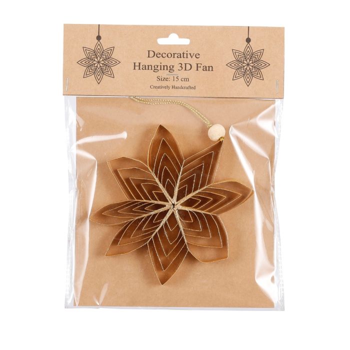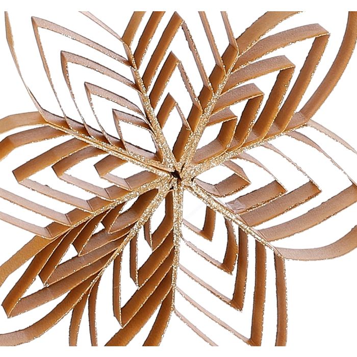 Handgjord, vikt stjärna i guldig papper med guldiga glitter på kanterna. Passar perfekt som en dekoration i fönster eller på julgranen. Stjärnan finns i flera färger och storlekar.