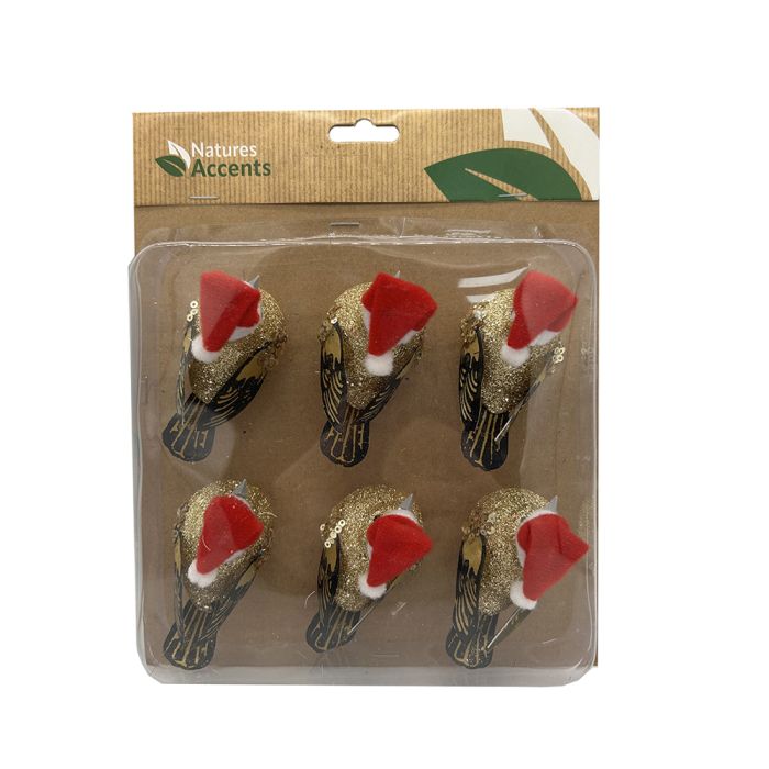 Julfåglar med klämma rött och guld 6-pack