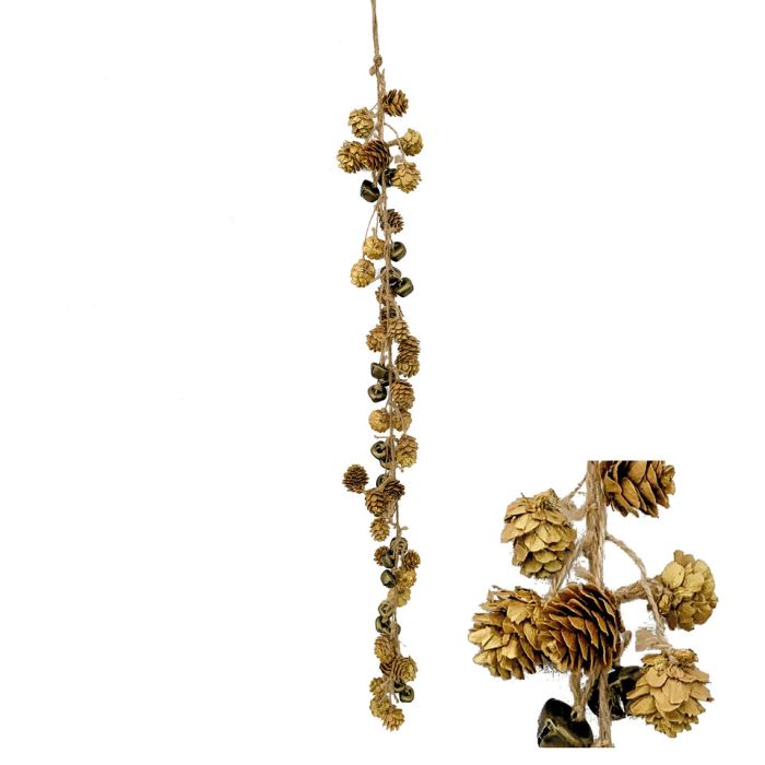 Girlang med kottar guldfärgad. Kotterna är runda och klockformade i en vacker guldfärg. Mycket dekorativ i fönster och dörröppningar.