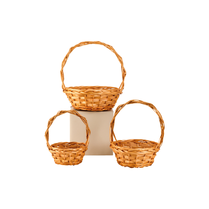 Korgset i pil. Korgsetet består av 3 korgar i ljus pil. Kan användas för att t.ex. påsk med påskägg i eller blomkorg.