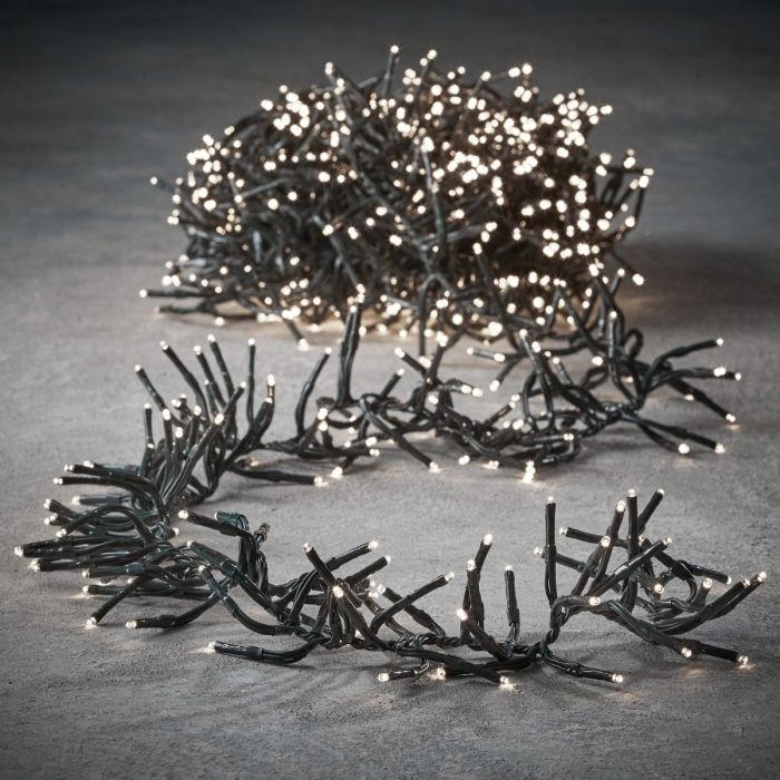 Snygg och lång ljusslinga med 1512 klassiskt vita LED-klusterljus. Den populära klusterljusslingan är designad för att skapa maximal ljusstyrka och en mysig atmosfär både inomhus och utomhus. De tätt placerade LED-lamporna ger ett vackert och livfullt sken som gör slingan idealisk för julgranen, räcket, häcken eller som dekorativ belysning vid festliga tillfällen. Ljusslingan är utrustad med 8 olika ljuslägen, så att du enkelt kan växla mellan fast sken, blinkande, vågor eller andra effekter beroende på tillfälle. En imponerande ljusslinga som verkligen blir ett blickfång.