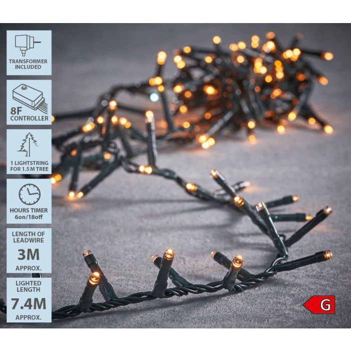 Snake Light-ljusslinga från Luca Lighting med 370 varmvita LED-lampor fördelade på en 7,4 meter lång kabel. Ljusslingan sprider ett varmt sken som skapar en mysig atmosfär både inomhus och utomhus. Med den inbyggda timerfunktionen kan du enkelt ställa in ljusslingan att lysa i 6 timmar och automatiskt släckas i 18 timmar. Du kan dessutom välja mellan 8 olika ljuslägen, så ljuset kan varieras från fast sken till blinkande och vågiga effekter beroende på tillfälle. Snake Light-designen ger ett jämnt fördelat sken som gör slingan perfekt att linda runt häckar, träd, balkonger eller längs husfasaden. Den varmvita färgen passar alla tillfällen från julbelysning till fest. Med kvaliteten från Luca Lighting får du en hållbar och pålitlig ljusslinga som kan användas år efter år.