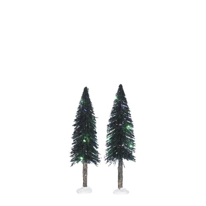 Barrträd med ljus i olika färger 2-pak